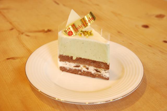 ナッツ・チョコレート・レーズン・チェリー・オレンジの楽しい歯ごたえの生クリームと、ピスタチオのムースです。